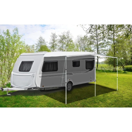 Classico tendalino per caravan con profilo di scorrimento, completo di pali